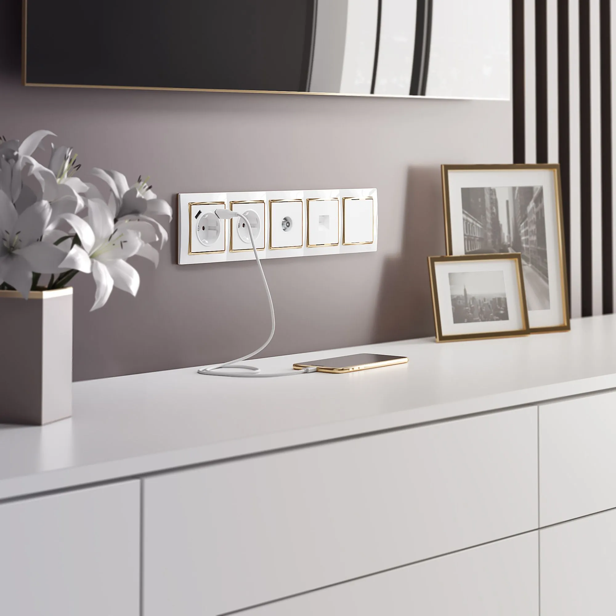 Розетка выполнена в лаконичном дизайне и легко встраивается в любую интерьерную концепцию. Она полностью совместима со всеми рамками Werkel, позволяя создавать гармоничные и функциональные композиции на любой стене.