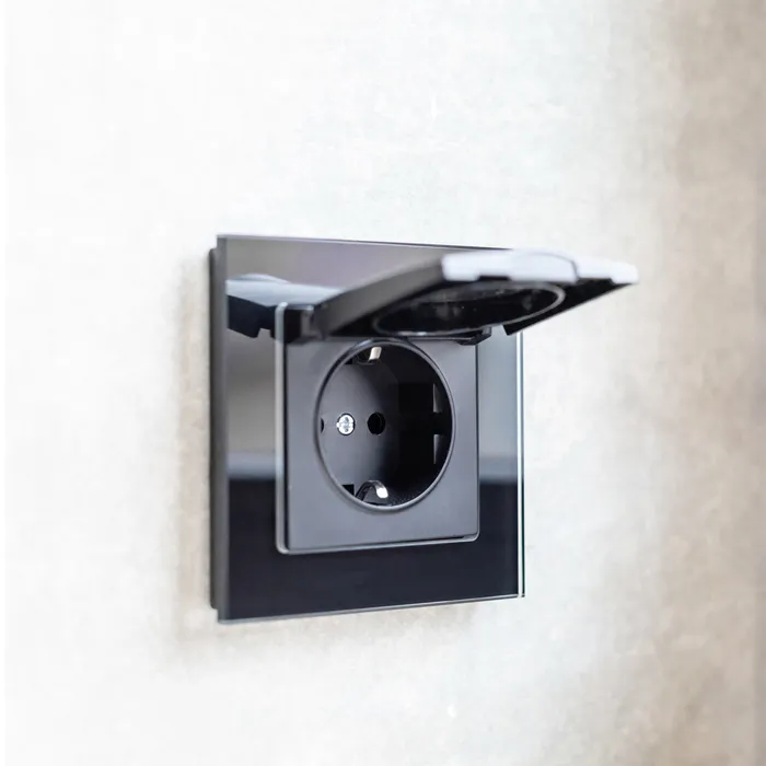 Розетка двойная влагозащищенная с заземлением с крышками и шторками (черный матовый) W1172208